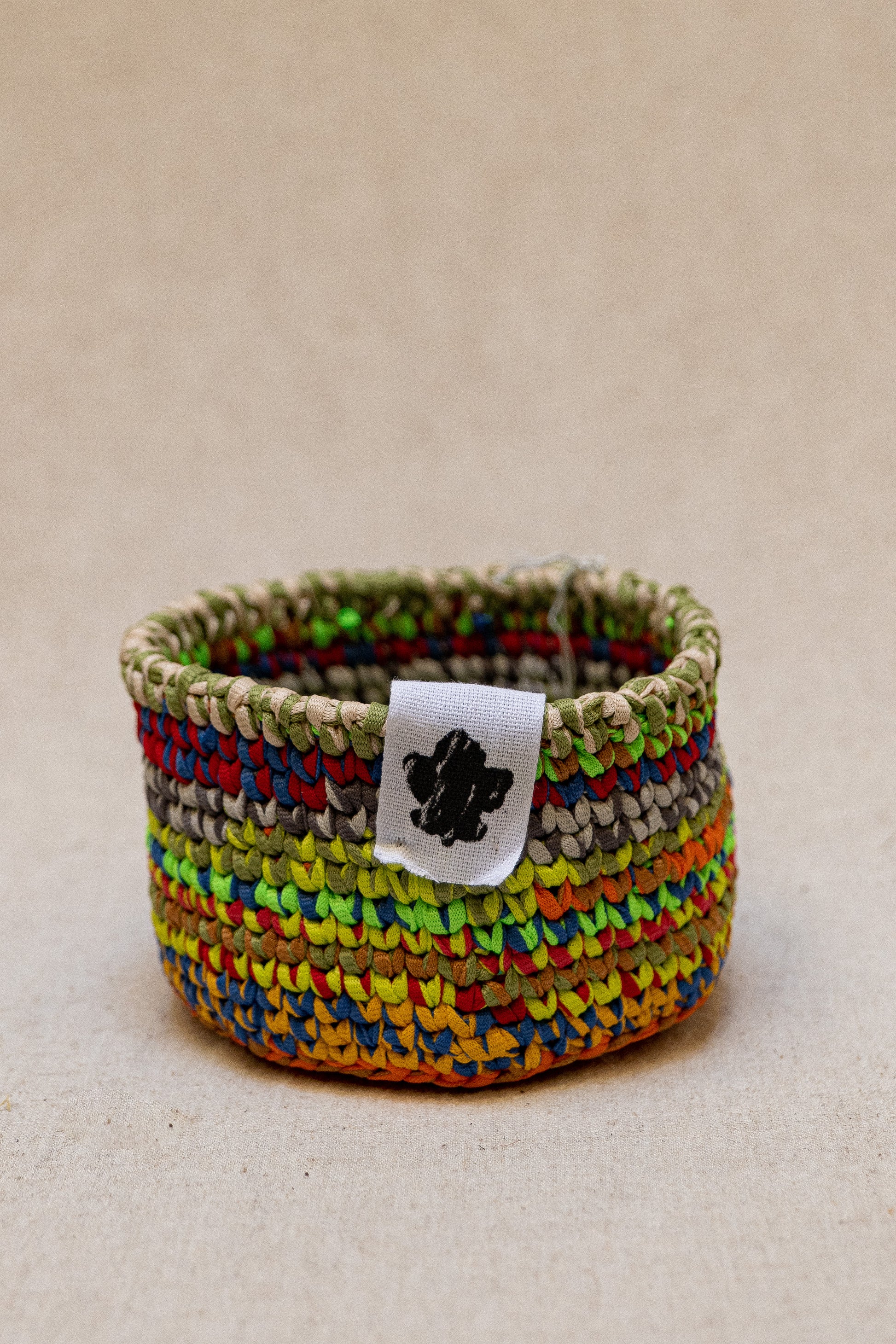 Porta un tocco di colore nella tua casa con questo cestino portaoggetti tondo basso, realizzato a uncinetto in poliestere multicolore. Perfetto per piccoli spazi, questo cestino aggiunge un elemento decorativo e funzionale a qualsiasi ambiente.