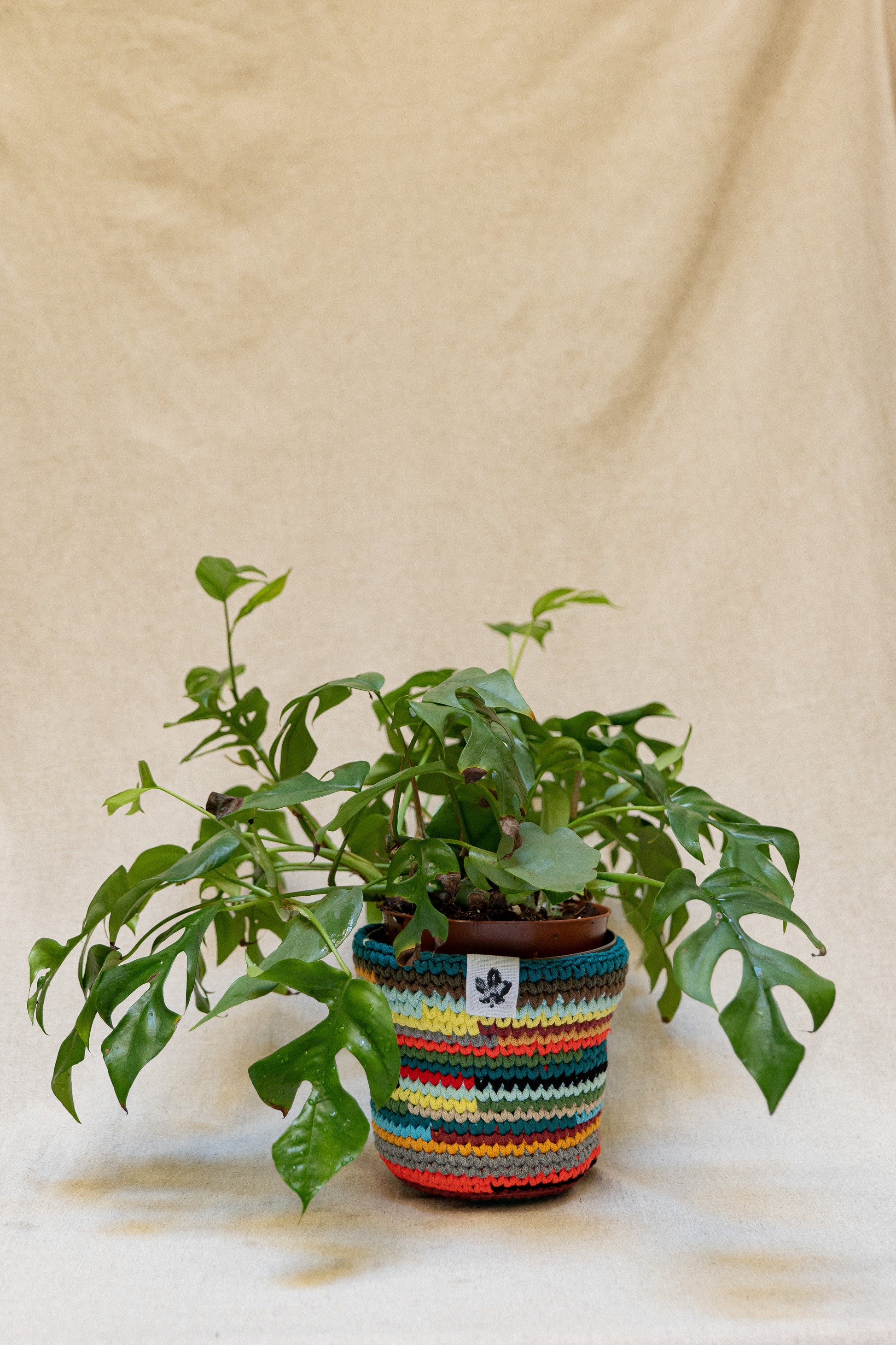 Coprivaso in cotone, diametro 18 cm, multicolore. Un accessorio naturale e colorato per decorare i tuoi spazi.