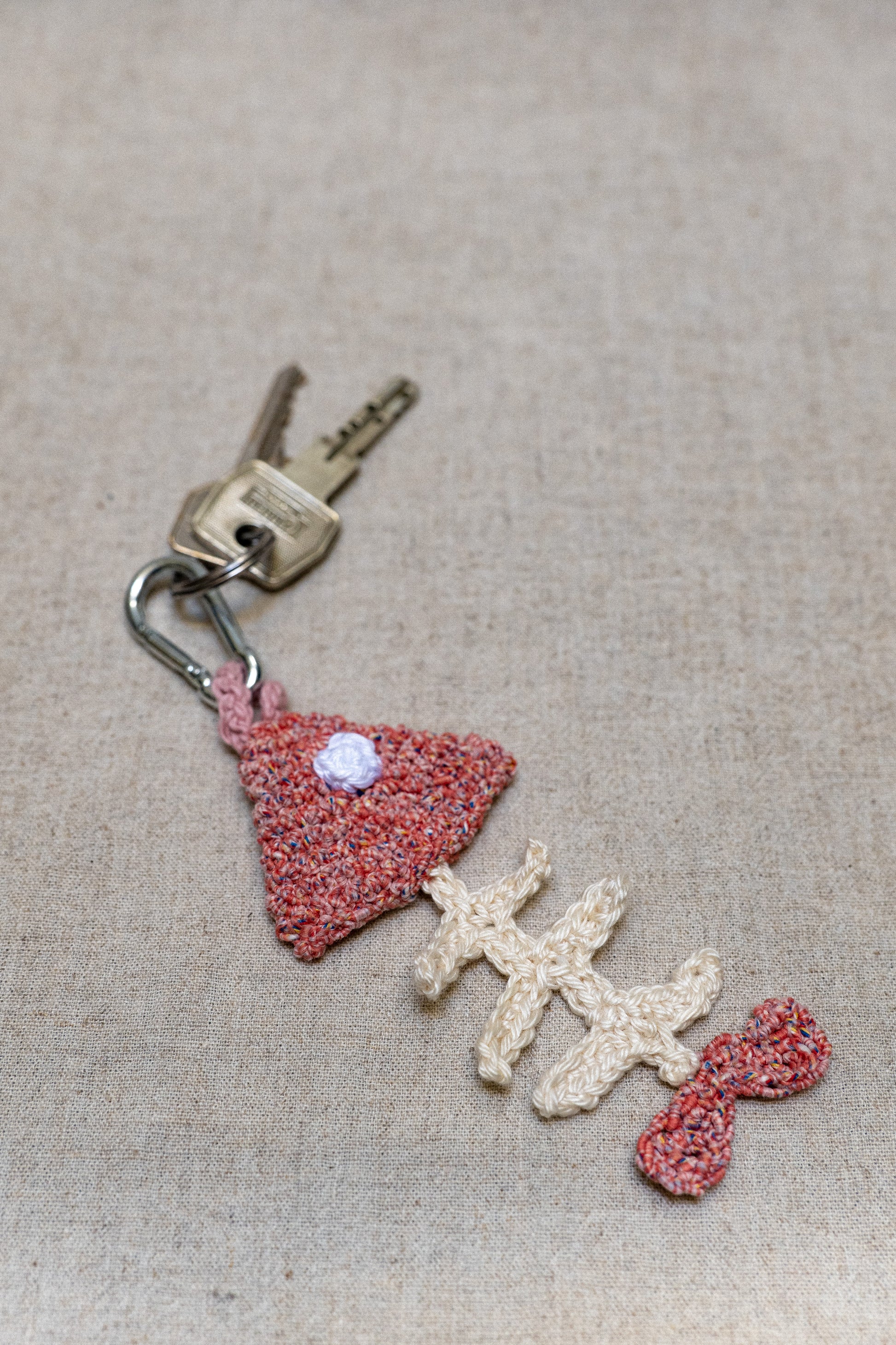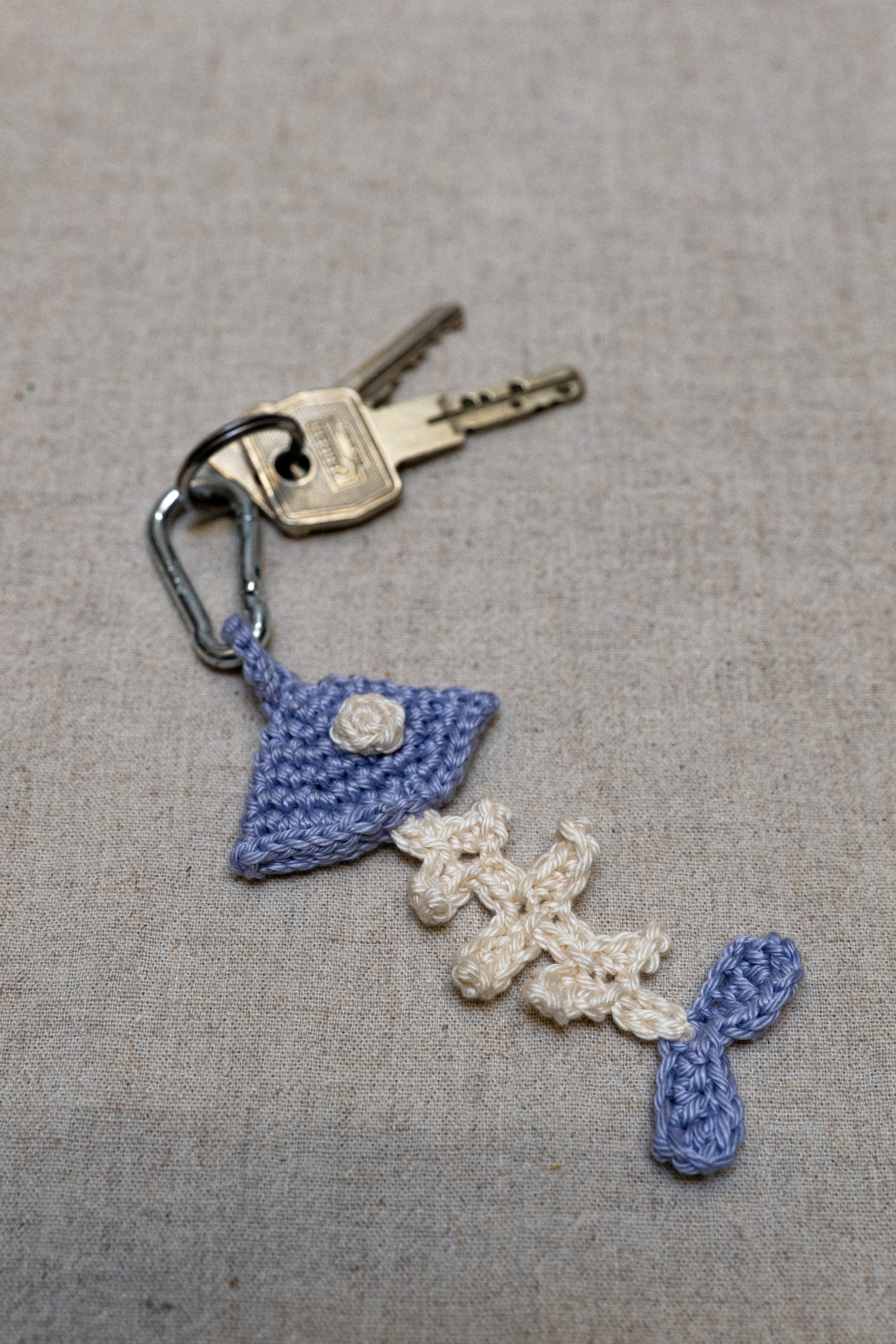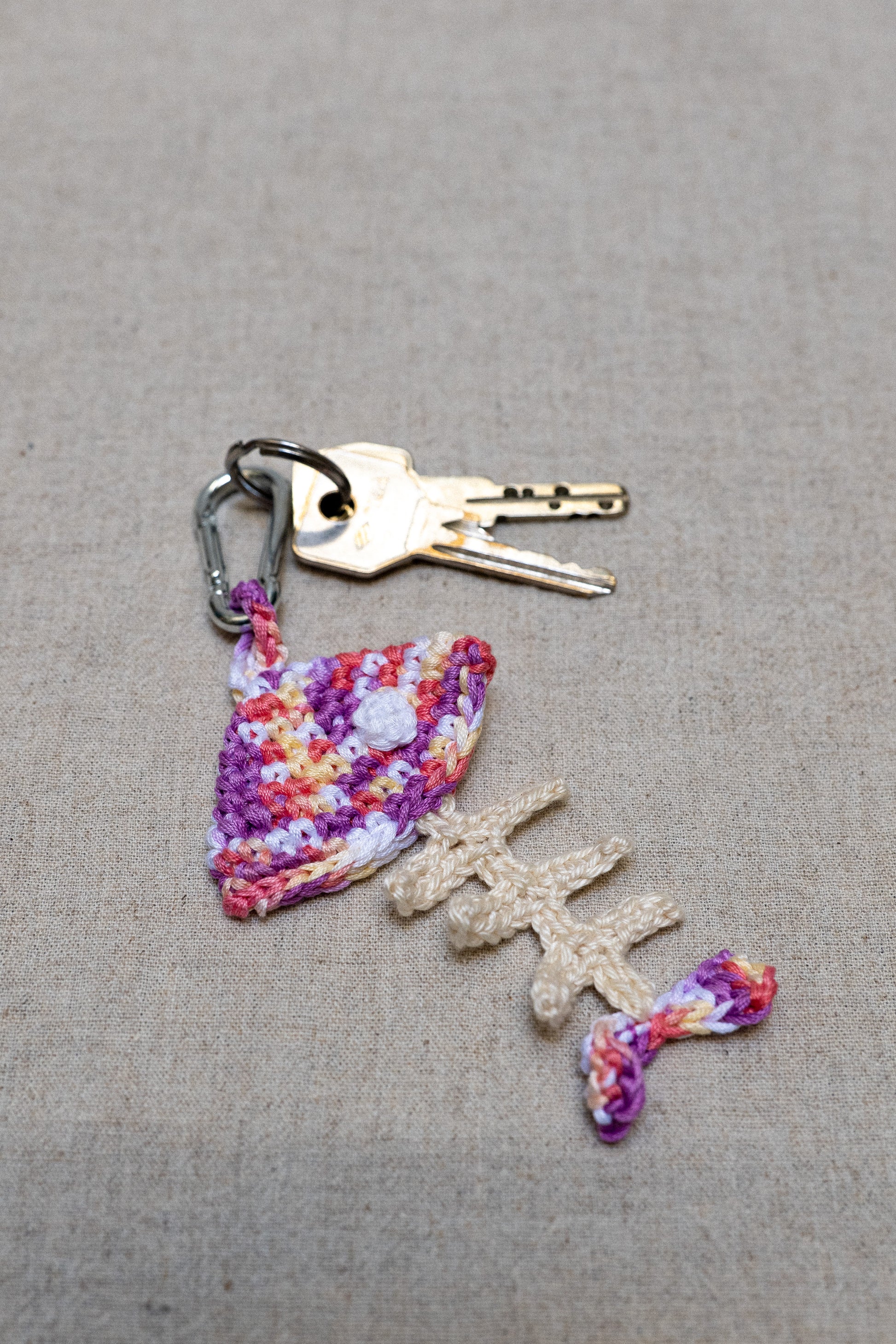 Portachiavi a uncinetto a forma di lisca di pesce, disponibile in diversi colori. Fatto a mano.