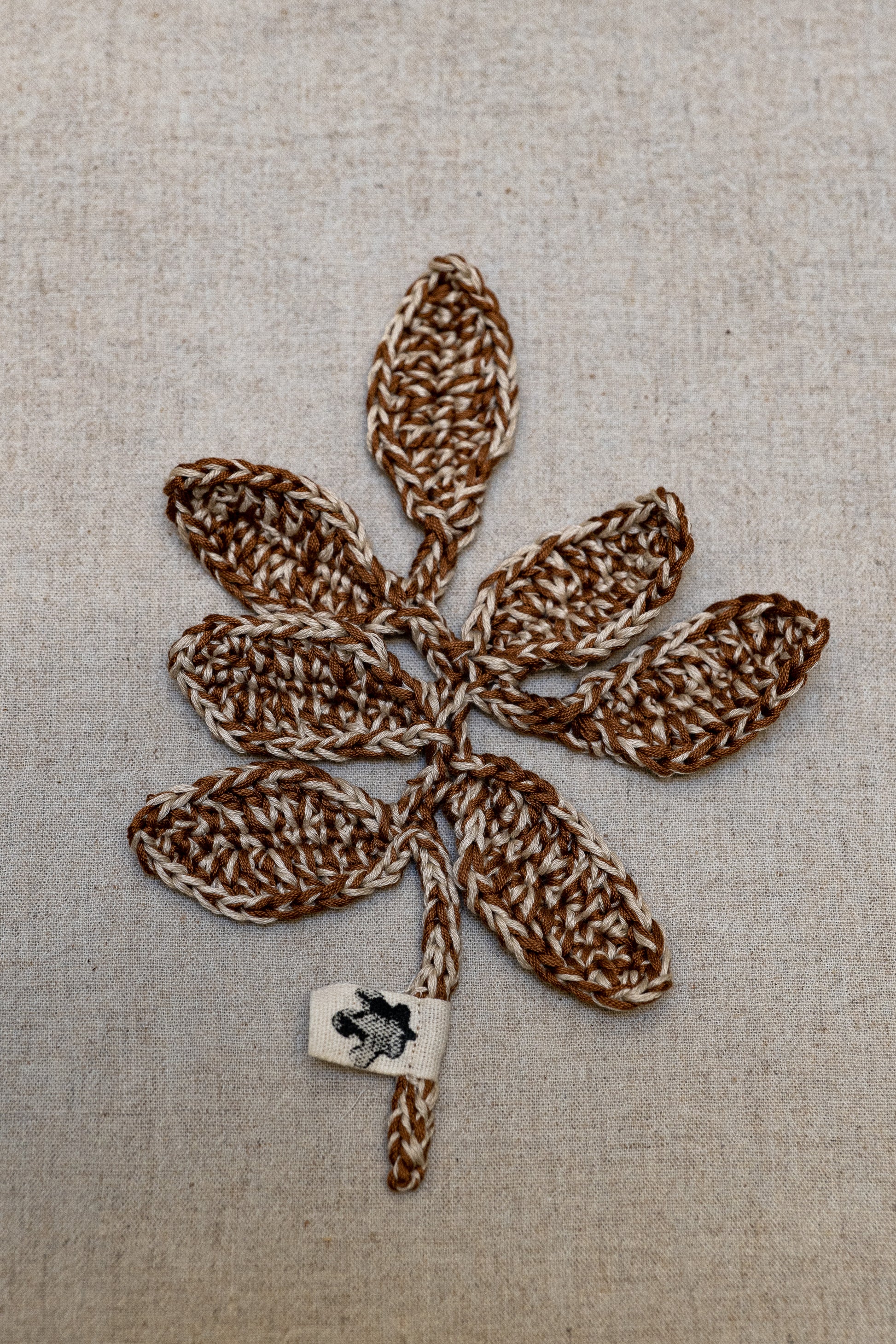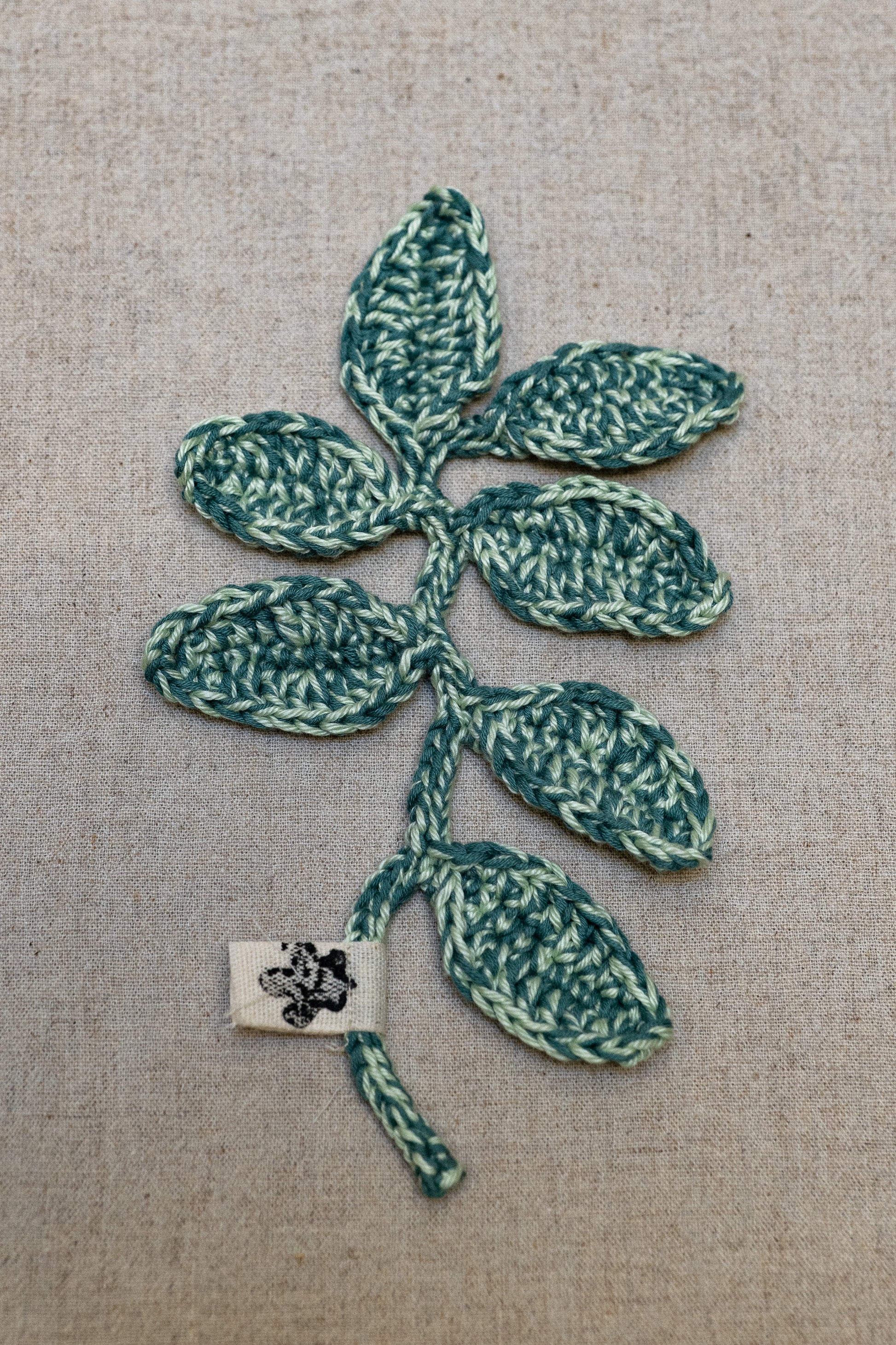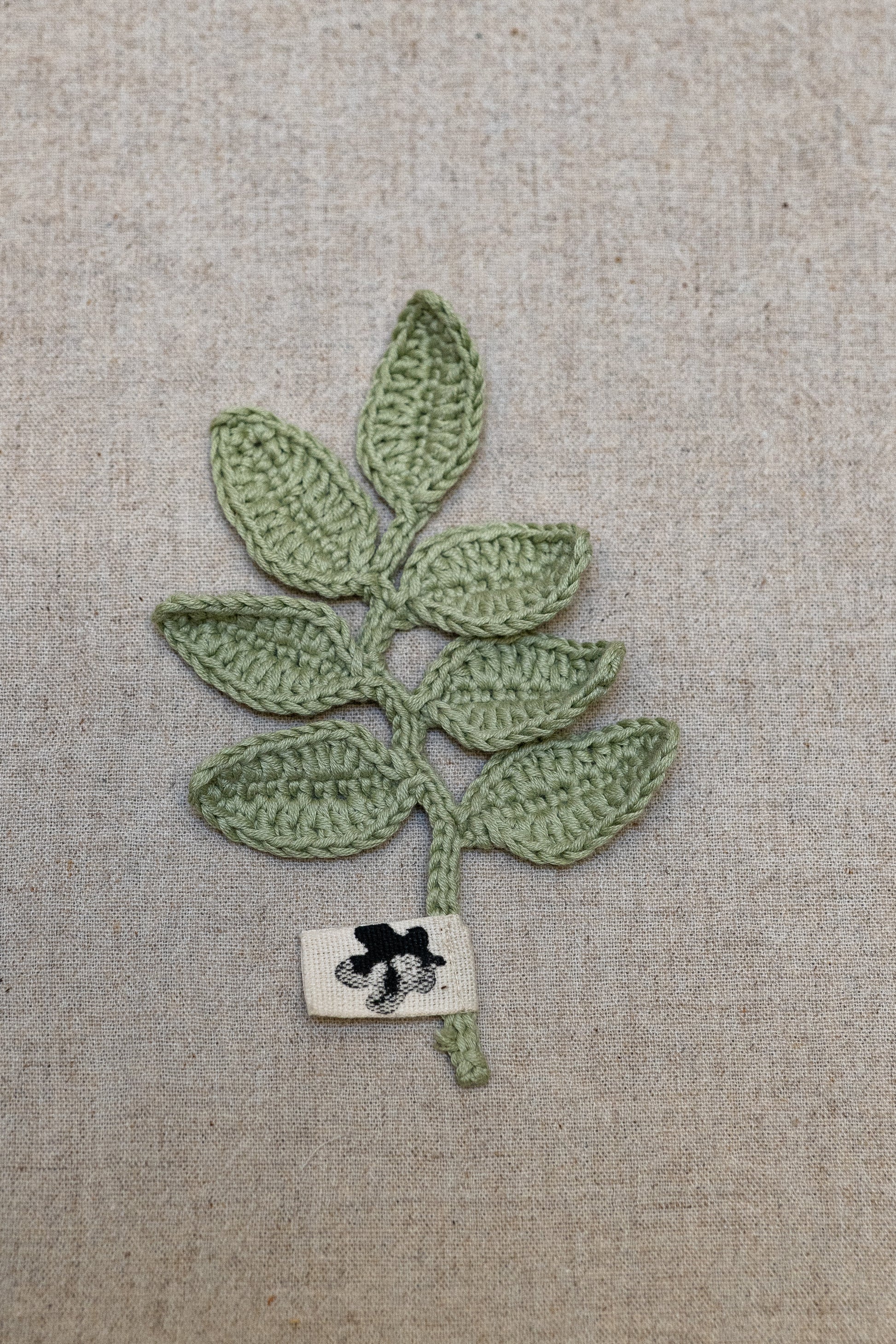 Segnalibro a uncinetto raffigurante delicate foglie di olivo. Questi eleganti segnalibri, lunghi 17 cm, sono perfetti per aggiungere un tocco naturale e raffinato ai tuoi libri.